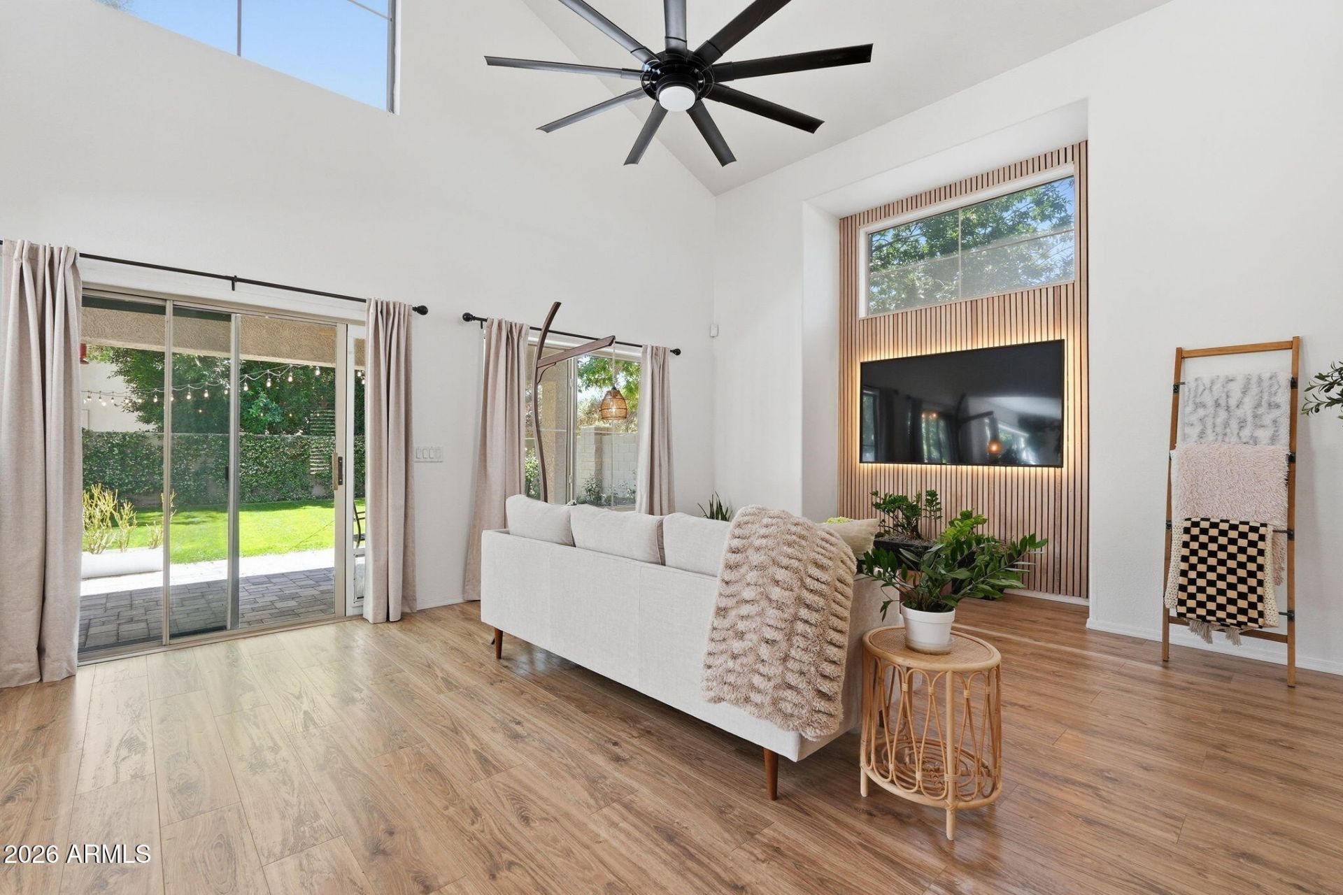BRIGHT, SPACIOUS, & OPEN. Located in Higley Groves at Morrison Ranch, this 3 bedroom, 2.5 bath home on a CORNER lot is exactly what you have been looking for! This home shows like a model home with too many upgrades to list. Vaulted ceilings invite you into the stunning living room with high-end laminate plank flooring, custom slatted wood panel wall, and plenty of natural light. The kitchen is beautifully curated featuring a custom tile backsplash, stainless steel chefs hood, floating shelves, pantry, stainless steel appliances, a breakfast bar, and it perfectly overlooks the lush backyard. Behind the barn door just off the kitchen is a mud room with additional storage, a drop zone for all your daily needs, and even a spot for your coffee maker! The backyard is... your own personal getaway, featuring a large covered patio, mature trees, an expansive pavered area, and sides to a common area. Even the garage is finished with flaked epoxy flooring! The desirable Higley Groves at Morrison Ranch community has plenty of tree lined streets and parks! Do NOT miss out on this one, schedule your showing today!
