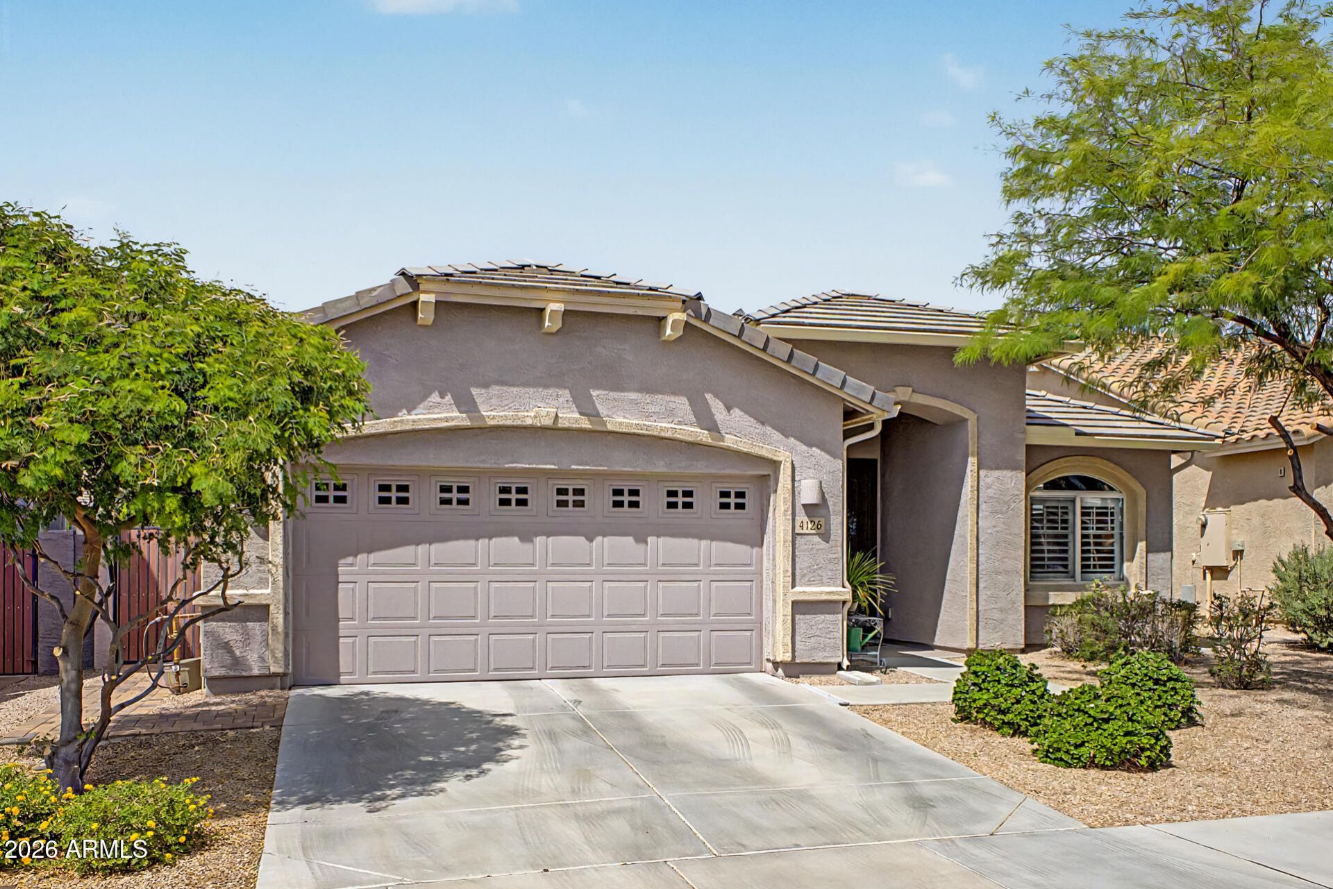 Wow! Come see this beautiful highly upgraded home with gorgeous backyard! The custom designed backyard features a covered patio plus an added pergola for additional shade. Enjoy sitting around the raised gas firepit with all the added pavers for a nice family hang out area, plus separate gas hook-up for BBQ Grill. There is plenty of room as well to enjoy the quiet backyard oasis, grass area, and 2 citrus trees. Enjoy extra electrical outlets, retaining wall planter, a storage shed, and upgraded sprinklers as well. The exterior also features gutters in the front of the home, the main water valve to the home replaced, Wi-Fi for the irrigation controller, A/C on bi-annual maintenance plan, and the garage door on annual maintenance plan. This home has been meticulously cared for. As you step inside, this delightful residence welcomes you with a spacious great room and soothing color palette, recessed lighting, classic plantation shutters, and stylish wood-look tile flooring. The eat-in kitchen comes with upgraded quartz countertops, upgraded white shaker cabinetry with crown molding, chic pendant lighting, stainless steel appliances, a pantry, and a peninsula with a breakfast bar for casual meals. Double doors lead to the primary bedroom suite featuring soft carpeting, an en-suite with large double vanities, a large walk-in shower with additional rain shower head plus separate wand sprayer, and a large walk-in closet. 3 additional bedrooms and 2 additional bathrooms finish off this home nicely. 1 bedroom is used as an office and has the closet space that is used for a couch area but can be framed in for a closet as well if desired. This home truly has the upgrades that you will appreciate and sits on a N/S lot with the backyard facing north for maximum shade as well. Come see this property before it is gone.