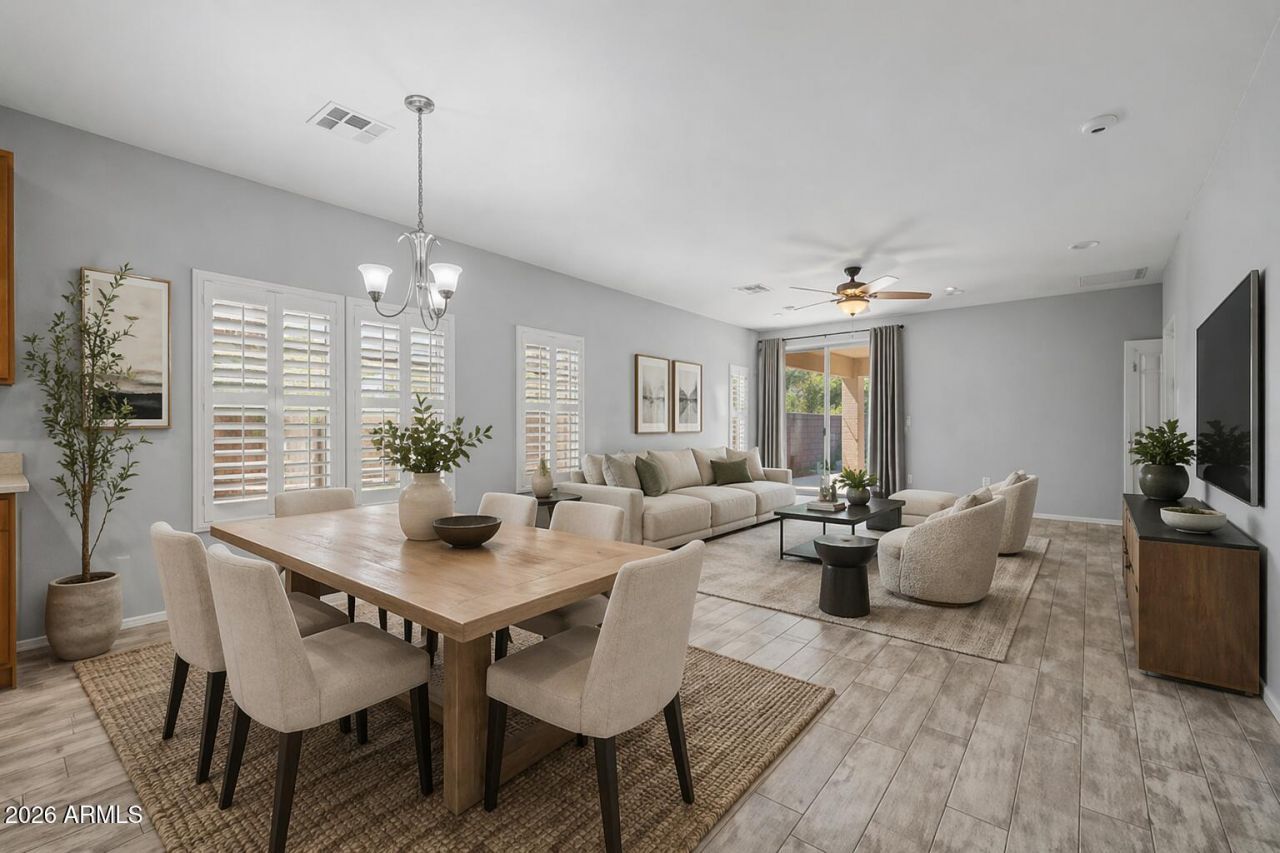 Fantastic opportunity to own this lovely 3-bedroom starter home in Avalon Village! Featuring new interior paint, new tiled floors, and upgraded wood shutters throughout, this home is move-in ready and full of charm. Youre welcomed by a 2-car garage and a low-maintenance yard with artificial turf for easy upkeep and great curb appeal. Inside, enjoy an open layout with high ceilings and a well-appointed kitchen with ample cabinetry, stainless steel appliances, and a pantry. The primary suite offers a private bath, while the backyard is perfect for relaxing with a covered patio and pavers. Conveniently located with close proximity to the freeway for an easy commute. Dont miss this one!